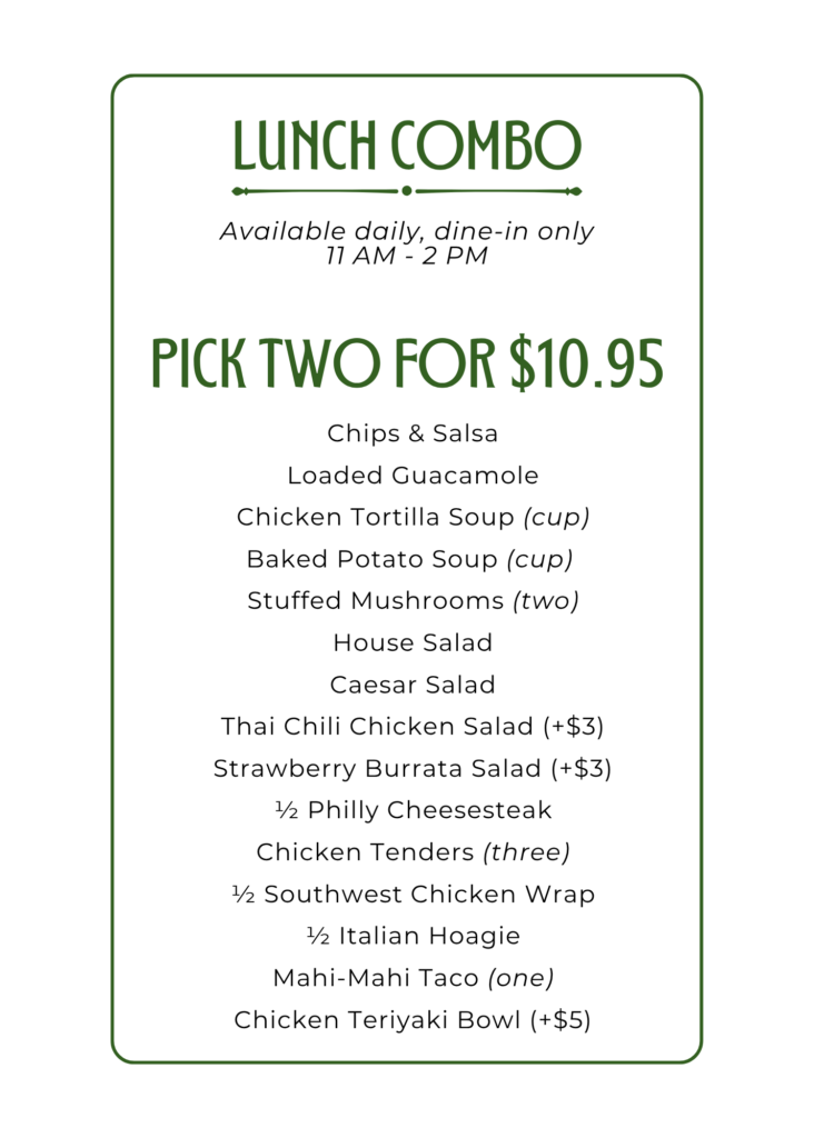 We have put together our guests’ most-loved dishes so you can pair two of them any way you like. Check out Lunch Special menu to see what is included.
